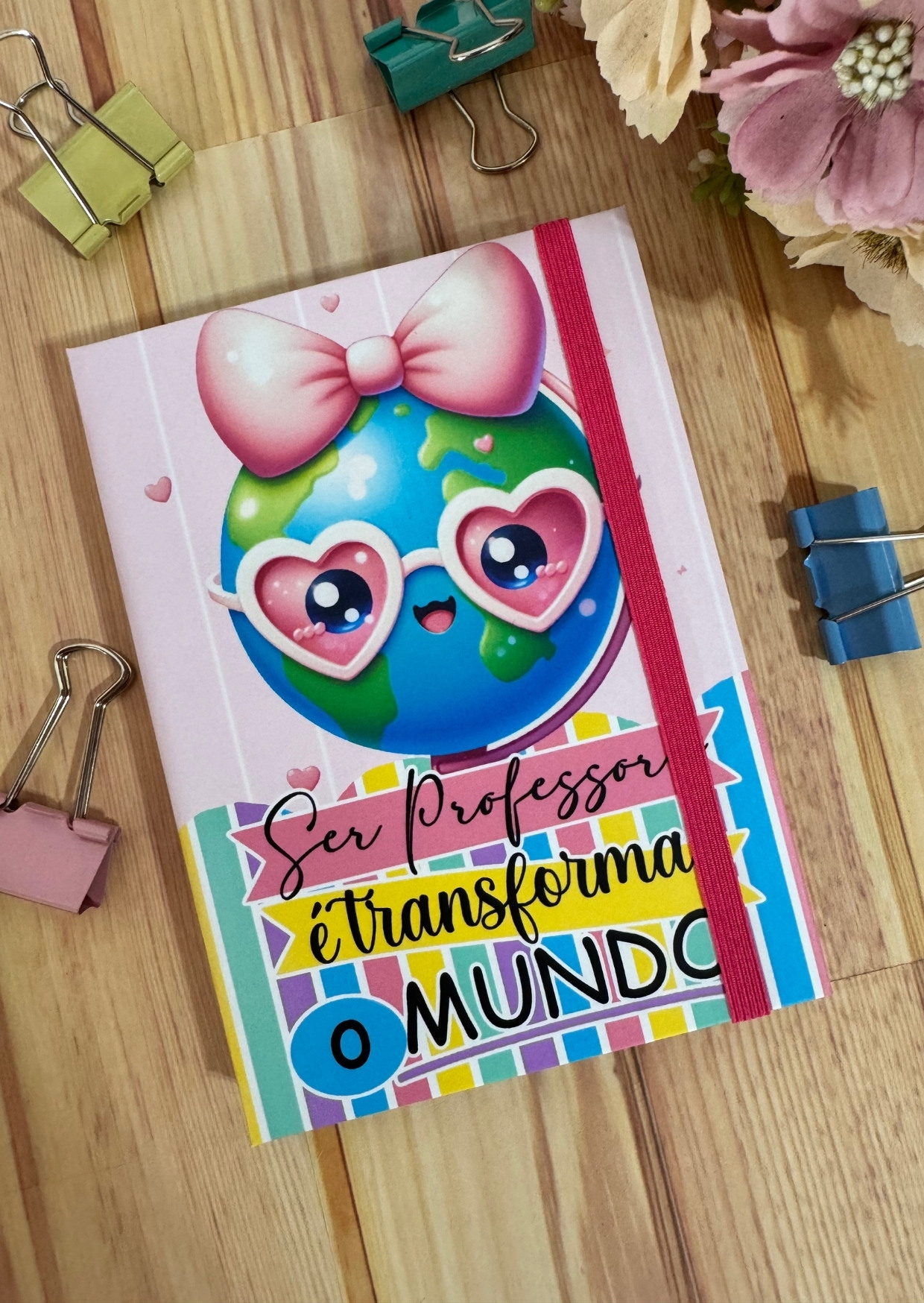 Contém um bloco 7x10cm com 100 folhas, um bloco autoadesivo e uma caneta adesivada.
